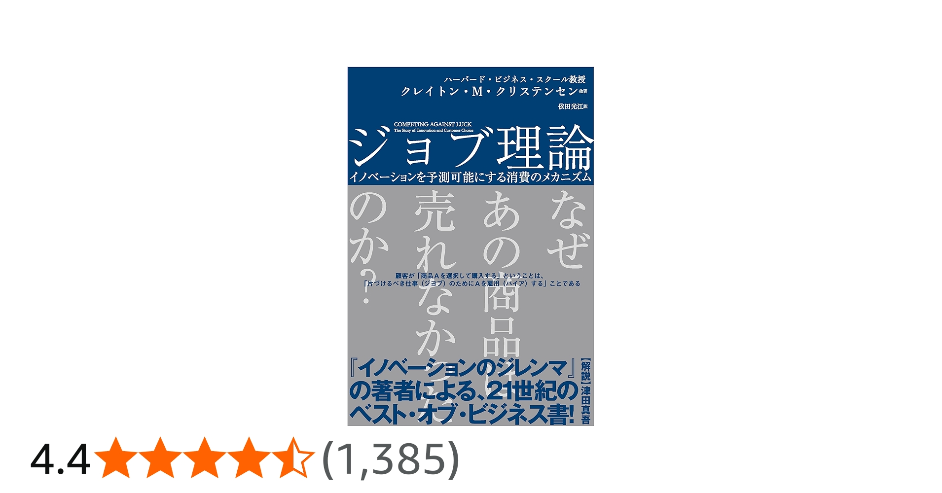 この本の著者は「ジョブ理論」という本も執筆されており、こちらも技術を開発する上での重要な視点が解説されており、この「イノベーションのジレンマ」と合わせて、ものづくりに携わる人にはぜひとも一読することをおすすめする本です。